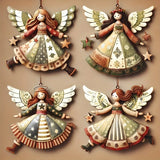 AngelWood Classics | 4er-Set Vintage Weihnachtsengel | Flache Holzanhänger | Deko für Christbaum & Zuhause | Festlicher Baumschmuck 2025/2026
