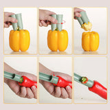 Von Chilischoten bis zu Paprika, Tomaten und Äpfeln – der CoreMaster entfernt Kerne im Handumdrehen. Seine scharfen Klingen schneiden mühelos durch Obst und Gemüse, während der ergonomische Griff Komfort und vollständige Kontrolle bietet. Zwei Größen passen für alles, von kleinen Chilischoten bis zu großen Äpfeln.