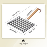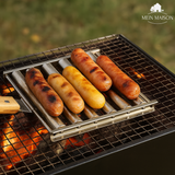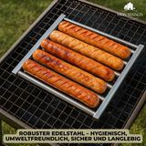 Mit dem GrillRoll Hot-Dog-Roller gelingt dir das gleichmäßige Grillen von bis zu 5 Würstchen oder Hot Dogs ganz mühelos. Dank dem stabilen Edelstahlrahmen und dem langen Holzgriff wird dein BBQ-Erlebnis sicherer, leckerer und vielseitiger – ideal für Camping, Gartenpartys oder spontane Grillabende.