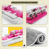 MopPro sorgt für glänzende Ergebnisse bei jeder Reinigung – ob nass oder trocken. Mit einem 360° drehbaren Moppkopf, Teleskopstiel aus Edelstahl und wiederverwendbaren Mikrofasertüchern wird die Bodenreinigung so einfach wie nie. Ideal für den täglichen Einsatz in Haus, Büro oder Gewerbe!