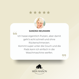Einfach abnehmen und in der Waschmaschine waschen – mehrfach wiederverwendbar.