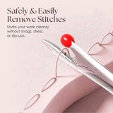 ✔️ Schonendes Nahttrennen: Die integrierte Schutzspitze verhindert Löcher und entfernt Fäden sauber – ideal für empfindliche Stoffe oder schwer zugängliche Nähte.