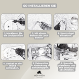 Nein! Der Spender wird einfach mit starkem doppelseitigem Klebeband befestigt – ganz ohne Werkzeug.