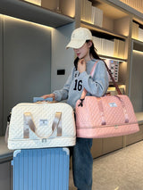 Die Raumio TravelFlex ist dein idealer Begleiter für Kurztrips, Fitnessstudio oder Wochenendausflüge. Mit ihrem stilvollen Rautenmuster, dem leichten, aber robusten Nylonmaterial und cleveren Fächern für Schuhe und nasse Kleidung überzeugt sie in jeder Situation. Ob im Flugzeug, im Auto oder beim Workout – diese Tasche bietet dir Struktur, Komfort und jede Menge Platz.