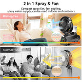 Mistello Tragbarer Sprüh-Ventilator mit Clip | 4 Geschwindigkeiten & 360° drehbar | Mini USB-Lüfter mit Vernebler für Büro, Auto & Camping