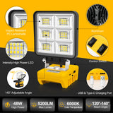 PowerLuma 48 LED Arbeitsleuchte | 48W Akku-Baustrahler | 5200 Lumen | USB-C Ladeanschluss | Für DeWalt-Akkus (ohne Akku)