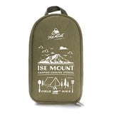 📌 Alles, was du brauchst: Das Set enthält ein Schneidebrett, Pfannenwender, Suppenkelle, Messer, Schere, Zange, Reislöffel, Flaschenöffner und eine geräumige Tragetasche – ideal organisiert und sofort einsatzbereit.