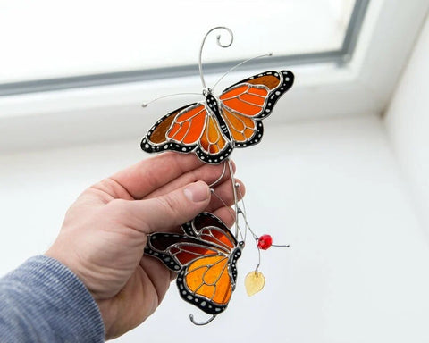 Schmetterlinge stehen seit jeher für Liebe, Hoffnung und die dauerhafte Natur unserer Erinnerungen. Dieses handgefertigte Glasornament bringt lebendige Farben in Ihren Raum und erinnert Sie daran, dass Ihre Liebsten immer in der Nähe sind. Wenn Sonnenlicht darauf trifft, erzeugt es ein atemberaubendes Farbenspiel, das Herz und Geist berührt.