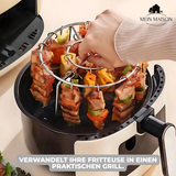 Sie lieben das Grillen, mögen aber keinen Rauch, Dreck und die lange Reinigung? Mit AirGrillPro können Sie saftige, gleichmäßig gegarte Spieße direkt aus Ihrer Heißluftfritteuse zubereiten – völlig rauch- und ölfrei. Einfach einsetzen, grillen und genießen.