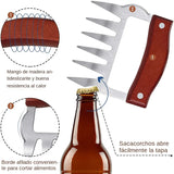 GrillWilde BBQ Fleischkrallen aus Edelstahl | Mit Holzgriff & Flaschenöffner | Ideal für Pulled Pork, Hähnchen & Grillfleisch