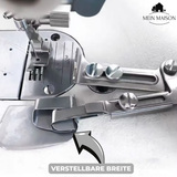 Verstellbarkeit: Links und rechts über Schraube für unterschiedliche Saumbreiten