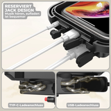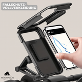 Funktionen: Regenschutz, Stoßschutz, 360°-Drehung, klappbare Halterung, Magnetverschluss