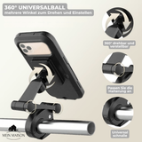 RideSafe schützt dein Smartphone vor Regen, Stößen und Kratzern – und hält es gleichzeitig jederzeit griffbereit. Dank robuster Halterung mit Metallachse, Silikondämpfung und 360°-Drehung passt sich die Halterung perfekt deinem Fahrstil an. Ideal für Pendler, Outdoor-Abenteurer und alle, die unterwegs verbunden bleiben wollen.