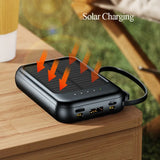 Solar-Powerbank Solivon Core 20K | 20.000 mAh | Mit integrierten Kabeln & LED-Taschenlampe | Für iPhone, Samsung, Xiaomi & mehr