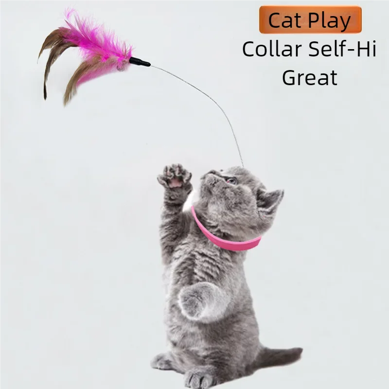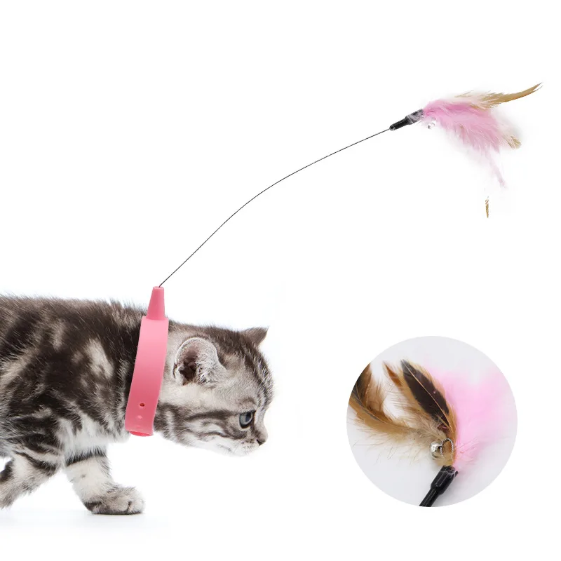 Flauschino Katzen-Halsband mit Spielstab | Selbstbeschäftigung & Interaktives Spiel | Mit Feder & Glöckchen | Für aktive Stubentiger