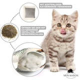 Ja, es besteht aus beißfestem, weichem Plüschmaterial, das für Katzen unbedenklich ist. Es gibt keine losen Teile oder scharfen Kanten.