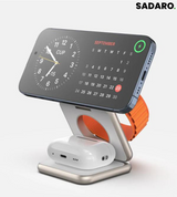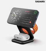 Vielseitige Aufladeoptionen: Laden Sie Ihr iPhone, Ihre Apple Watch und Ihre AirPods gleichzeitig auf. Passt sich Ihren Ladeanforderungen an, indem es flach oder aufrecht im Dock liegt.