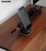 Endlich Schluss mit dem lästigen Durcheinander verschiedener Ladegeräte! Unser faltbares 3-in-1-Ladekraftwerk TriplexHub ist die ultimative Lösung, um Ihr iPhone, Ihre Apple Watch und Ihre AirPods gleichzeitig aufzuladen. Egal, ob Sie zu Hause sind oder unterwegs, diese vielseitige Ladestation passt sich Ihren Bedürfnissen an, ob sie flach auf dem Tisch liegt oder aufrecht im Dock steht.