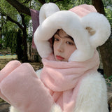 Arctava 3-in-1 Wintermütze | Plüsch-Bärenohren mit Schal & Handschuhen | Kuschelig, Warm & Stilvoll