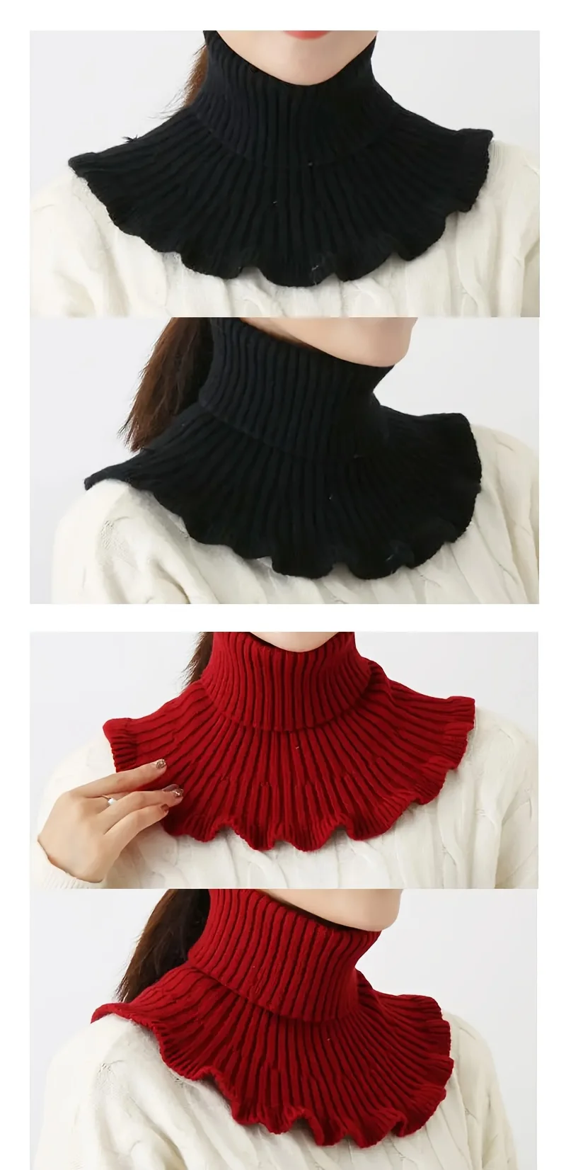 Élora Strick-Kragen Schwarz-Weiß | Eleganter Abnehmbarer Kragen mit Rüschenkante | Weich, Warm & Stylisch für Damen | Modischer Falscher Kragen