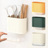 Ordina Wandhalter Besteckhalter Küche | Ohne Bohren | Löffel- & Essstäbchenbox mit Ablauf | Platzsparender Organizer aus Kunststoff