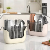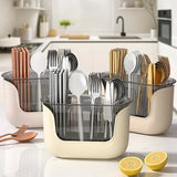 OrgaDish Besteckhalter mit Abtropfschale | 3 Fächer | Küchen-Organizer für Stäbchen & Besteck