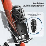 ✔️ Volle 360°-Rotation – Positionieren Sie den Halter in jedem Winkel, selbst in beengten Rahmengrößen. So ist Ihre Flasche immer leicht erreichbar.