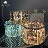 ✔️ Endlose Blumenillusion mit Spiegeleffekt: Die verspiegelteten Innenwände schaffen eine beeindruckende optische Tiefe – als ob Sie in ein weites Meer leuchtender Blüten blicken würden. Perfekt, um jedem Raum eine elegante und verträumte Atmosphäre zu verleihen.
