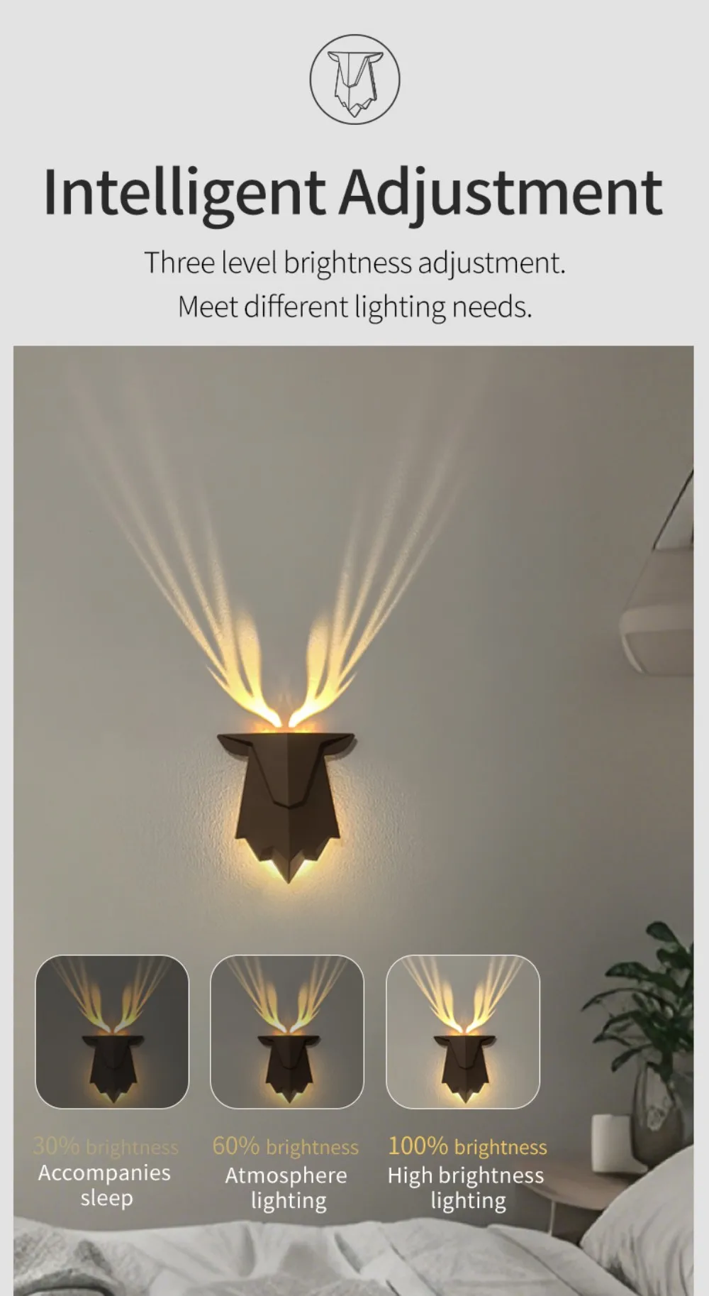 📌 Beruhigendes Hirsch-Motiv: Der sanfte Lichtschein wirft einen wunderschönen Hirschschatten an die Wand – ideal für gemütliche Winterabende oder eine entspannte Schlafumgebung.