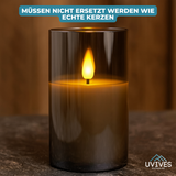 ✔️ Elegantes Design: Echte Wachs-Kerzen in einem edlen Glaszylinder – ein hochwertiger Blickfang für jede Einrichtung.