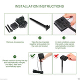 Bedienung: Automatische Lichtsteuerung + manuelle Schalter (ON/OFF & MODE)