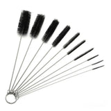 Brushilo Reinigungsbürsten Set 10-teilig | Edelstahl mit Nylonborsten | Für Trinkhalme, Flaschen, Röhrchen & Laborzubehör