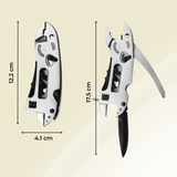 Zange, Messer, Schraubendreher, Schraubenschlüssel und weitere praktische Funktionen.