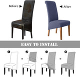 Die Hussen dehnen sich, um den meisten Standard-Esszimmerstühlen mit Rückenlehnenhöhen zwischen 46–58 cm und Sitzmaßen von 35–46 cm zu passen.