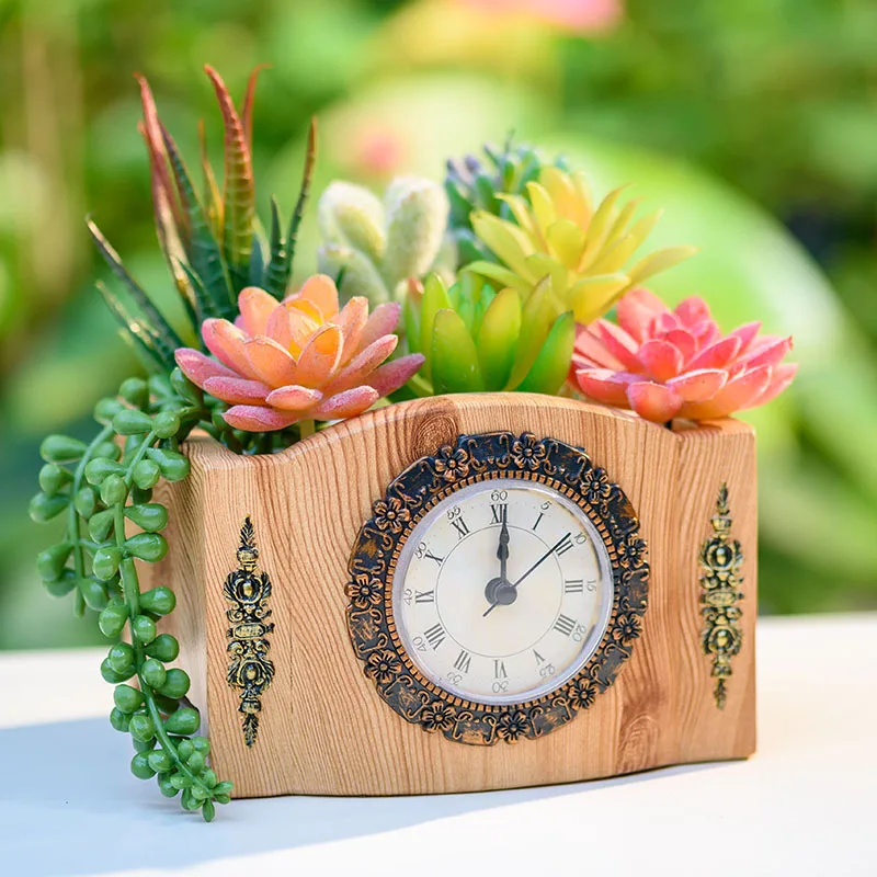 Produktname: TimeBloom Vintage Tischuhr mit Blumentopf