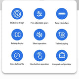✨ Bladeless-Technologie & LED-Display – Sicher, leise und stylisch – mit Echtzeit-Anzeige für Akkustand & Windstufe.