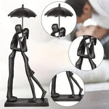 Dekofigur Liebesvögel mit Schirm | Schwarzes Metall | Romantisches Wohnaccessoire