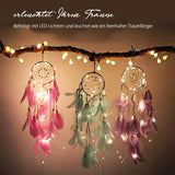 Dieser wunderschön handgefertigte Traumfänger mit sanftem LED-Leuchten hält Albträume fern und schenkt dir jede Nacht ein beruhigendes Gefühl von Sicherheit. Er fängt schlechte Träume ein, während er die guten durch seine zarten Federn direkt zu dir fließen lässt. Außerdem verwandelt er deinen Raum in ein warmes, bezauberndes Refugium.