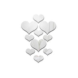 HeartMirro | 3D Wandsticker Herz-Set | Spiegeloptik Gold & Silber | 10-teilig