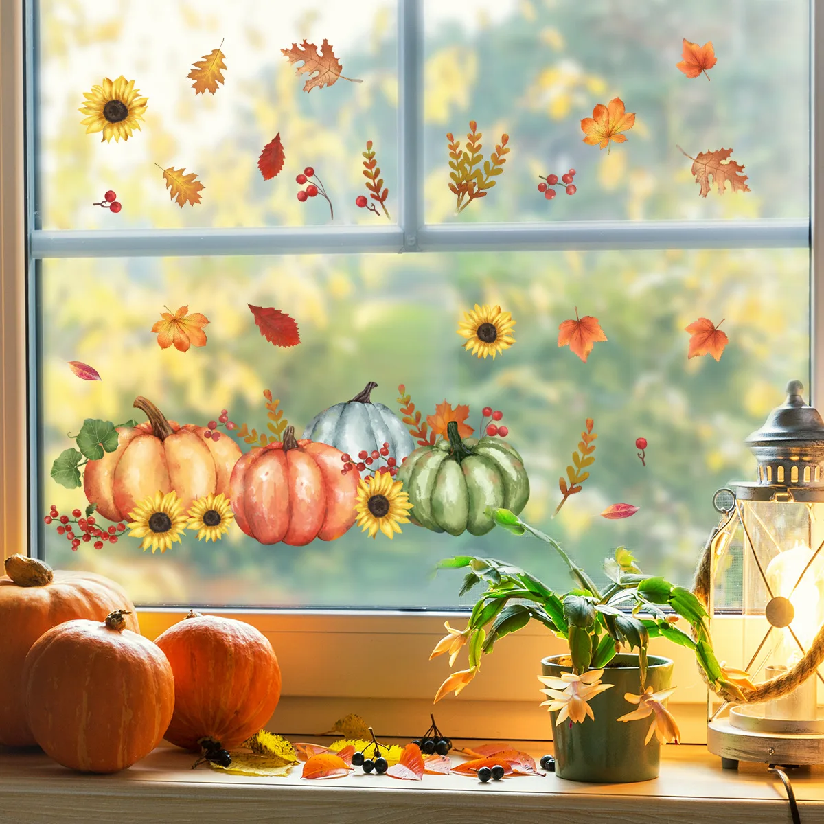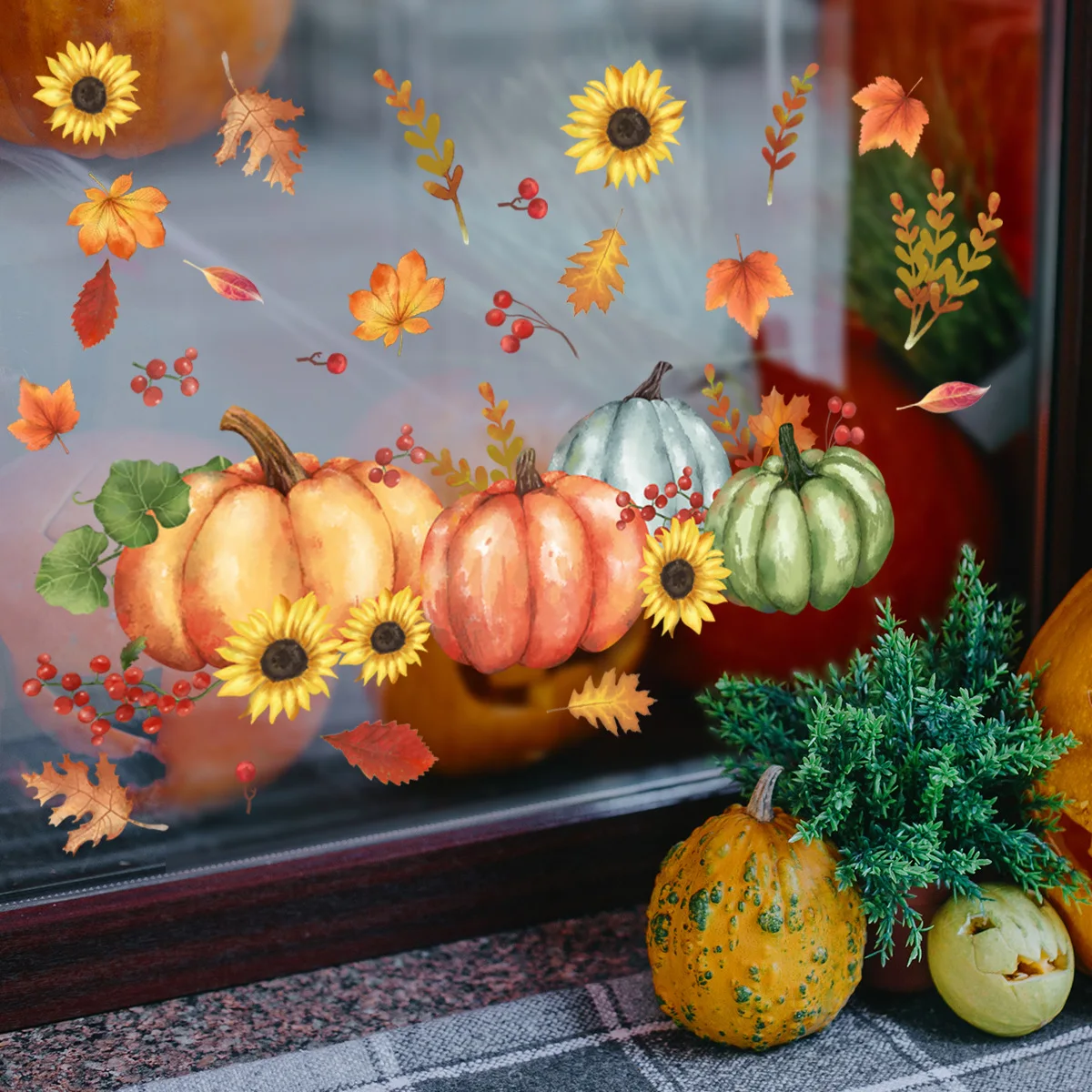 Herbst-Fenstersticker LeafyCharm | Kürbis- & Blätter-Motive | Wiederverwendbare Deko | Für Zuhause & Büro