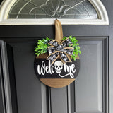 • Design: Rundes Holzschild mit „Welcome“-Schriftzug, Totenkopf & Halloween-Schleife