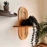 Wandregal Rattanova | Handgefertigt | Boho-Design in Bogenform | Khaki & Braun