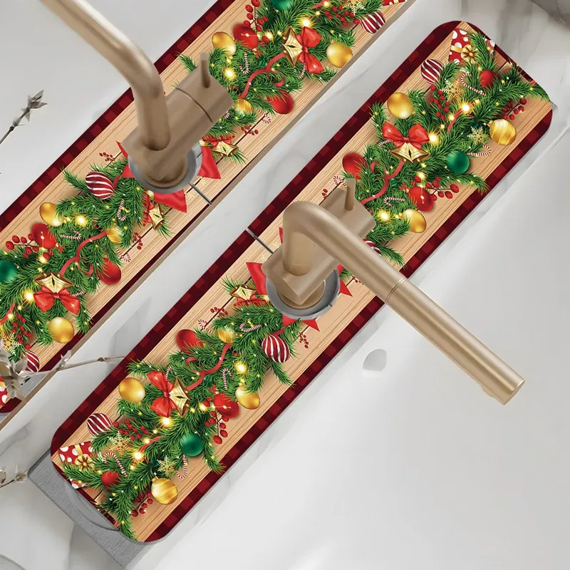 Bringen Sie festliche Stimmung in Ihre Küche – mit der Weihnachts-Spülmatte „Nordivelle“. Diese stilvolle und saugfähige Matte schützt Ihre Arbeitsfläche vor Wasserflecken und verleiht Ihrer Küche gleichzeitig weihnachtlichen Charme. Ideal für den Bereich rund um das Spülbecken oder den Wasserhahn – funktional und dekorativ zugleich.
