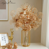 Aurivelle Gold Collection | Künstliche Palmen-, Ginkgo- & Eukalyptusblätter mit Rosen & Hortensien | Edle Dekoblumen für Hochzeit & Zuhause