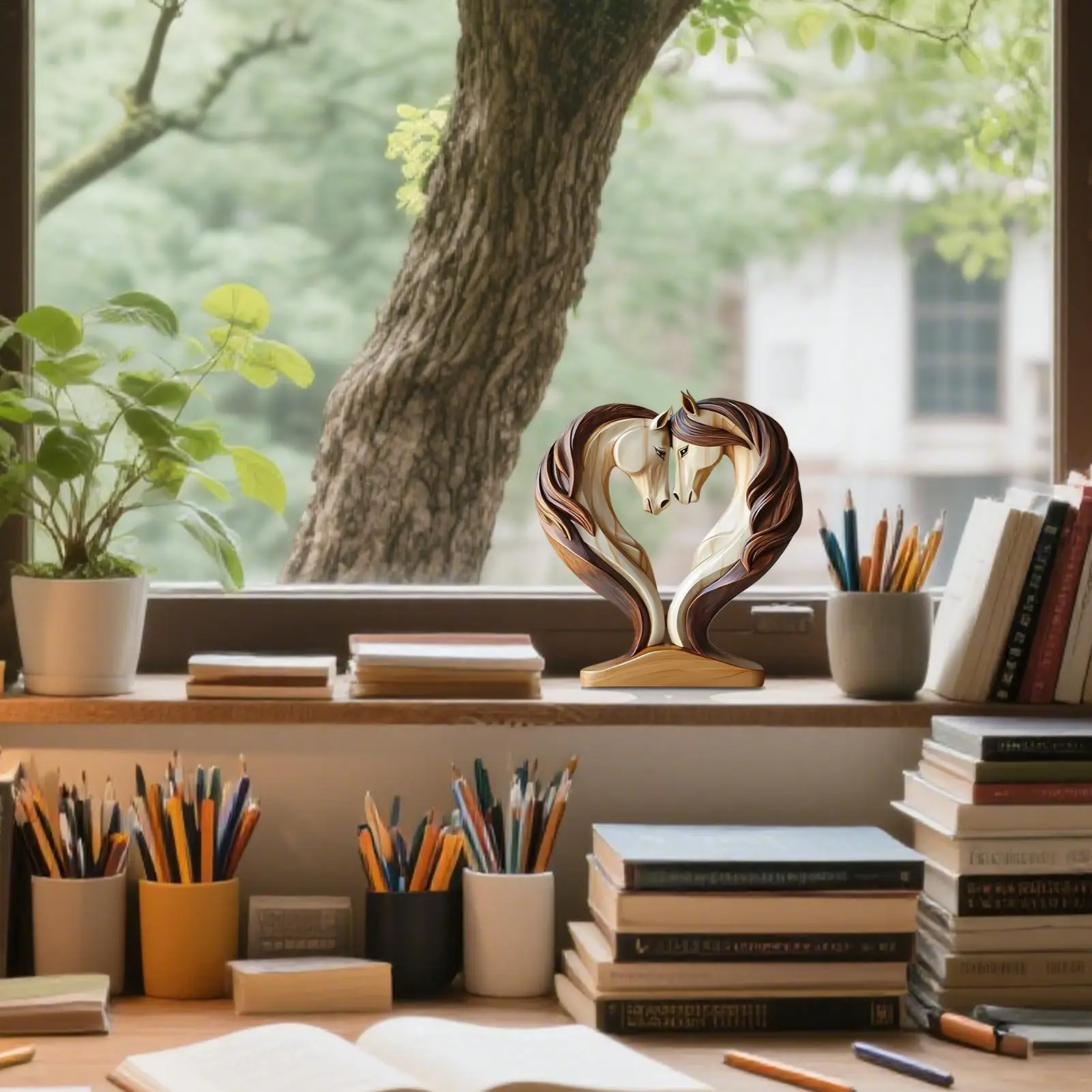 Equora Pferdeskulptur | Pferde Skulptur Holz | 2D Design in Umarmungs-Pose | Dekoration für Wohnzimmer, Büro & Kinderzimmer