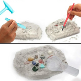 Enthält Edelsteine, Fossilien und realistische Ausgrabungswerkzeuge wie einen Mini-Hammer, eine Spitzhacke und eine Bürste für echten Ausgrabungsspaß.