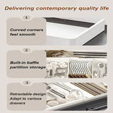 ERWEITERBARES DESIGN - Die Organizer verfügen über ein innovatives erweiterbares Design, das es Ihnen ermöglicht, die Länge anzupassen, um unterschiedlichen Schrank- oder Schubladengrößen gerecht zu werden und jedes Mal eine perfekte Passform zu gewährleisten.