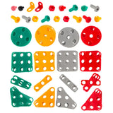 Das Spielzeug wird mit Zubehör in verschiedenen Formen und einem Anleitungsheft mit Ideen geliefert. Zusätzlich zu den Mustern im Heft können Sie Ihre eigenen geometrischen Fantasiefiguren kreieren!