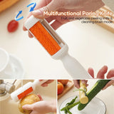 ✔️ Dual-Funktionsdesign für jede Schälarbeit: Zwei Klingen vereint in einem Werkzeug – ideal für Obst, Gemüse und sogar Fisch. Kein separater Schäler nötig, spart Zeit und Platz in Ihrer Küche.