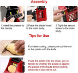 ✔️ Präzise, scharfe Klingen: Gefertigt aus 420 chirurgischem Edelstahl behalten die Klingen lange ihre Schärfe und sorgen für gleichmäßige, saubere Schnitte – ideal für Pommes, Gemüsesticks oder Obst.